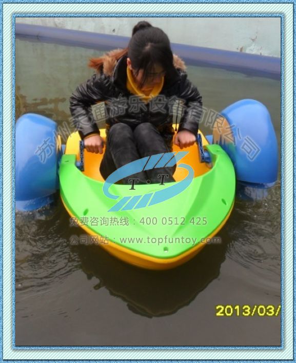 一、手摇船是什么? 手摇船是采用耐冲击、高密度、抗紫外线的HDPE加工而成,通过两侧叶轮转动提供动力和稳定性的一种水上游乐设备。近年来,夏季在公园、游泳馆、风景区等场所普遍存在的一种游乐方式,因其高安全性、高趣味性深受儿童和家长亲睐。 手摇船科技体验健康、安全。尖端科技的技术实现更完美的娱乐效果,同时可锻炼孩子的手、脑协调能力,使孩子胆识过人,它独特的安全性更是所有家长及孩子的首选。