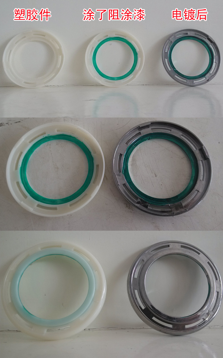 2.直接喷涂或用毛笔涂装,涂于不需要电镀的部位,此部位则不会上镀.普通喷涂及毛笔描画。