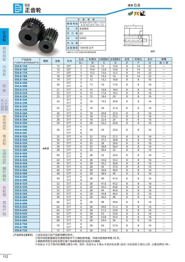 供应日本KHK 正齿轮 SSY 齿轮 模数分别为0.8、1 系列