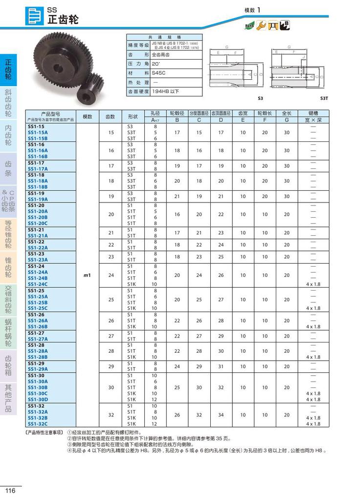 供应 日本 KHK 齿轮 SS0.8-15A 正齿轮 系列