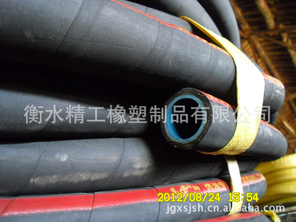 1.结构:由内胶层,1-2层帘子线或合成纤维编织或缠绕增强层,外胶层组成。2.特点:胶管具有外径公差小、耐油、耐热等性能优良、轻便、管体柔软经久耐用等优点。胶管的最小爆破压力为工作压力的四倍。3.纤维编织(或缠绕)胶管可供柴油机输送汽油、煤油、柴油及其它矿物油类用,具有优良的抗油侵蚀性能,并且能传送100℃以下的机油。胶管使用环境温度不低于-30℃;同时适用于其它石油基、油水乳化液体和压缩空气及惰性气体介质。4.主要产品:φ3.2~φ38mm输油用纤维编织(或缠绕)的燃油专用胶管及输送空气纤维编织、缠绕的空压专用胶管.设计压力为10-15kg/C㎡,编织胶管长度大,最长可达百米。