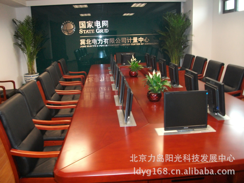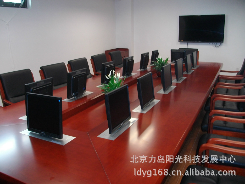 6、无线网络控制:支持:RS232,RS485本产品主要主要用于大型 会议室,学术报告厅,展 厅内。当开会时,需要使 用显示器时,隐藏在会议 桌内部的升降机把显示器 从会议桌下面升到桌面、 当不使用显示器时,升降 机自动下降,显示器隐藏 在会议桌内,起到防尘,防盗,保持桌面平整美观。