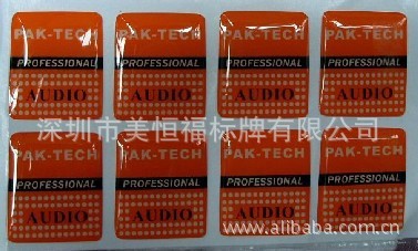 水晶滴胶标牌:做出来的效果是,表面透明,四边低中间高,后面有带自粘的不干胶,可印刷不同色的图,水晶滴胶可分为软滴胶和硬滴胶.可分为环保和不环保.可分为耐变黄胶和易变黄胶.耐变黄胶的透明度高.无气泡,价格高.粘性相当强,主要适合高端产品,贴在产品上很难撕下来,易变黄胶的价格相对较低.但胶比较快变黄.变硬.粘性差点