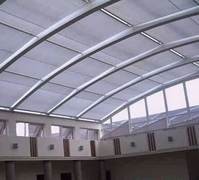 FSS天棚帘系统卷管一般使用直径为63mm或85mm的带槽圆管,支架选用高强度镀锌钢板,卷绳器为尼龙66材质。