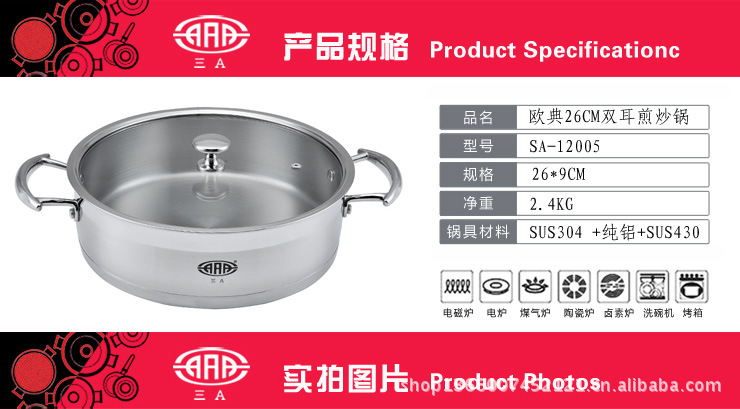 广东三A不锈钢制品集团有限公司是新兴县同行业的先驱,有近28年的历史,是广东省较早生产不锈钢的厂家,自1984年以来致力于不锈钢钎焊/压焊复合底锅具、三层钢锅具、硬氧化铝锅具、不锈钢餐具的开发、生产、销售和自营进出口业务,形成主导产品、辅助产品、零配件、包装彩印等自成一体的集团化生产企业,而且每届广交会都有大量新产品向广大客户推介。