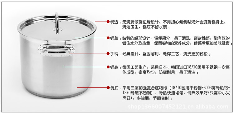 公司主营产品:不锈钢汤锅、炒锅、煎锅、奶锅、蒸锅、刀更叉、碗筷碟子、锅铲镬铲、汤勺漏勺、打蛋器等等各种类高档不锈钢厨具。