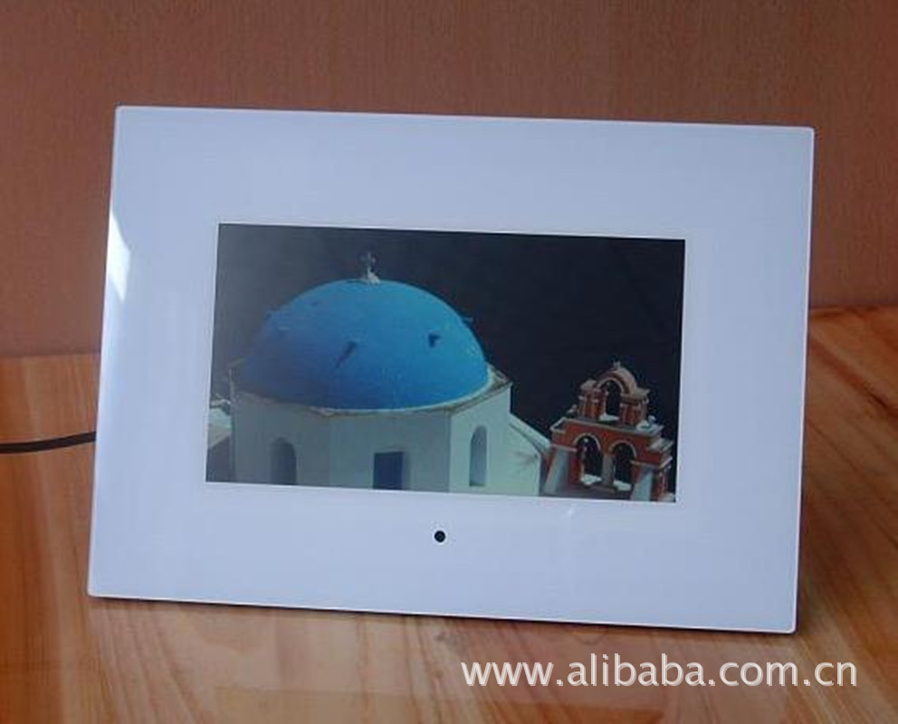 产品尺寸:7英寸 16:9,分辩率:800*480 产品可选颜色:白色/黑色 支持内存卡类型:MMC/MS/SD,U盘。 支持图片格式:JPEG/JPG 支持视频格式:MPEG1/2/4,AVI 支持音频格式:MP3 图片循环播放,自动幻灯片播放,可选图片播放间隔时间,多种幻灯片切换模式。音画同步功能,可选播放/停止/暂停。 音乐循环播放,播放/停止/暂停功能,音量调节,静音功能,可选播放模式,显示文件类型,播放日期与时间。 可视角度:最大140度。 亮度:350cd/m性 外观尺寸 :23.1*16.5*3.4CM 彩盒尺寸:32.5*20.5*6CM 外箱尺寸:43.5*33.5*36CM 装箱数量:10台 净重: 8.5KG,毛重: 9.5KG