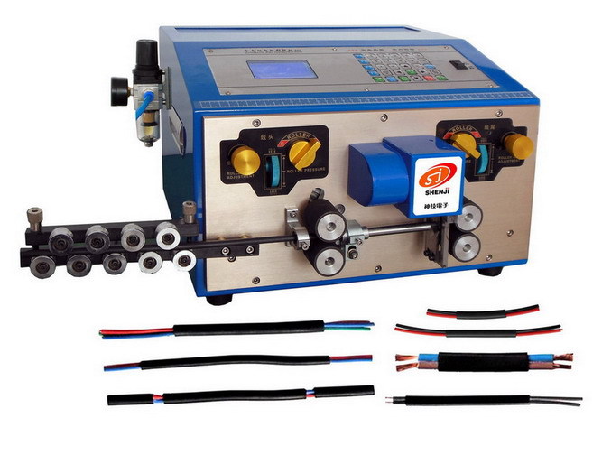 本机采用四轮驱动与微电脑数控装置,可按要求设置切线长度、剥头长度、剥尾长度、中间剥、线径范围等。每套切线剥线数据的设置可独立存储为一套程序,本机可存储99套程序,预存后可直接调用,极大方便用户加工不同规格线束而反复设置。本机最大的特点是采用中文液晶屏显示,操作简单,剥线范围大,精度高、稳定性强,耗损少。