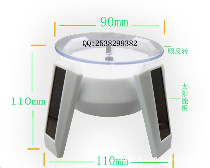 太阳能旋转展示台在顺时针及逆时针的情况下都能够旋转。产品在自然光线下能够正常地工作。可以加装一节5号电池增强动力