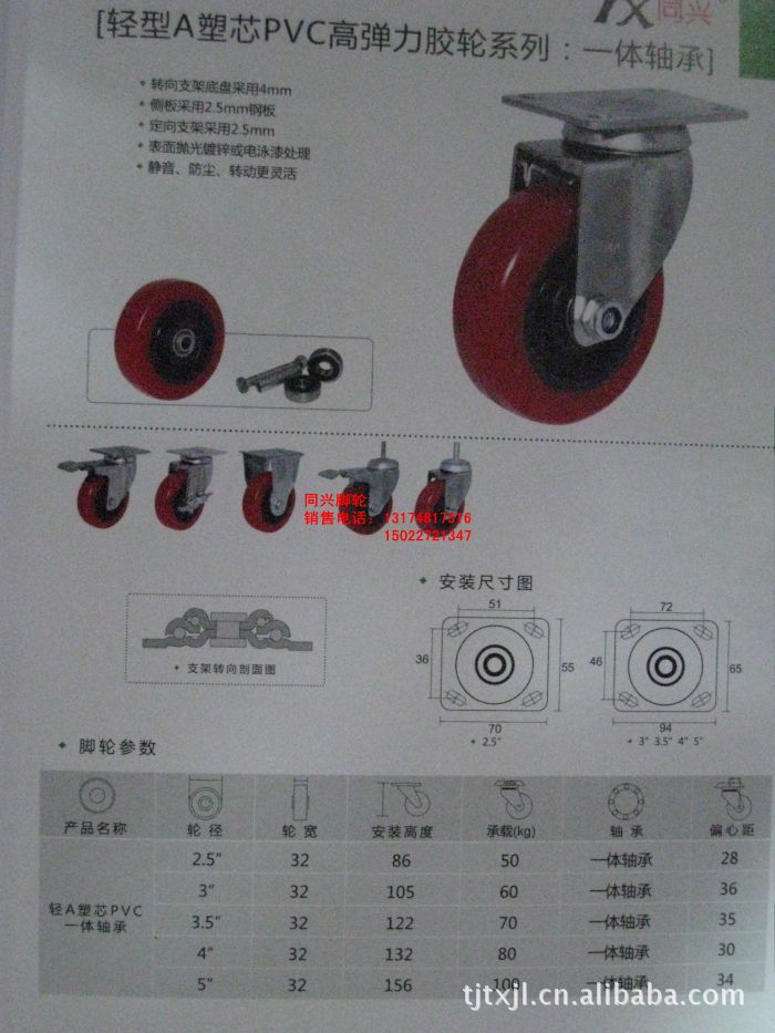 轻型A塑芯PVC高弹力胶轮系列:一体轴承