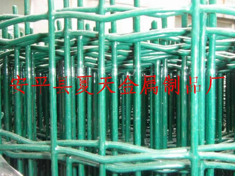 又名波浪网、波浪护栏网。 在高速公路图纸中又名:涂塑焊接网 英文名:Holland wire mesh涂塑荷兰网(6张) 材质: 低碳钢丝、铝镁合金丝。 表面处理:热镀锌涂塑,冷镀锌,黑丝。 编制方法: 金属网栏厂 选用优质铁丝焊接而成,将PVC或PE、PP粉末经过硫化处理涂其表面,具有附着力强、防腐性好,色泽光亮等。 制造工序: 钢丝焊后涂塑,也可单独电镀、热镀及涂塑。 规格: 1.网宽:0.5m-2.5m; 荷兰网安装图2.涂前(丝径)涂后:1.0-3.0(mm)。 3.孔径:60*60,50*50 50*100,100*100(mm)。4.长度:30m 常见规格: 产品常见规格: 丝径尺寸:2.5mm 网片尺寸:1.8x30m 1.5mx 30m 2mx30m 1.2*30m 网孔尺寸:50 x 50mm 50mmx100mm 网柱高度:2.1mm 2.3mm 网柱间距:3m 整体颜色:墨绿色 草绿色 斜支撑:每30m用2根制造工序: 荷兰网是将电焊网片进行涂塑处理,也可单独电镀、热镀及涂塑。产品特点: 荷兰网具有防腐性能好,抗老化,美观大方。安装简便快捷。可以广泛应于工业、农业、市政、交通等行业的围栏、装饰、防护等设施中使用。具有过滤精度好,负荷强度高,成本低廉的特点。 用途: 产品应用于高速公路、铁路、机场、住宅小区、港口码头、饲养、畜牧等的防护。编辑本段商家 安平作为“世界丝网之乡”汇聚众多荷兰网商家。荷兰网附着力强,防腐性好,色泽光亮,规格齐全,品种多样,大量现货供应,坚固耐用,方便运输和安装,美观大方,过滤精度好,总体性能好,负荷强度高。可根据客户不同的需求提供的图纸进行荷兰网产品生产。