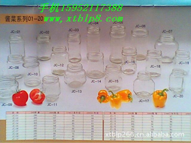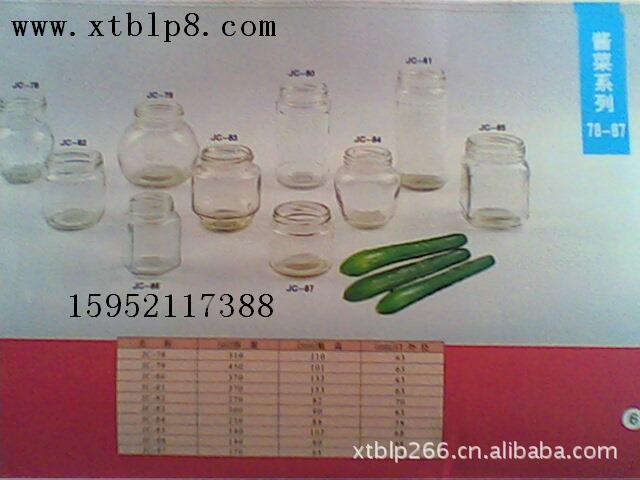 酱菜瓶系列:我厂生产的酱菜瓶玻璃瓶透明度好,厚度均匀光滑,可用来装腐乳、辣酱、酱菜类、鱼类罐头等,包装方式有编织袋包装、纸箱包装、木托盘包装等。可来人来函加工定做,欢迎你们的到来。