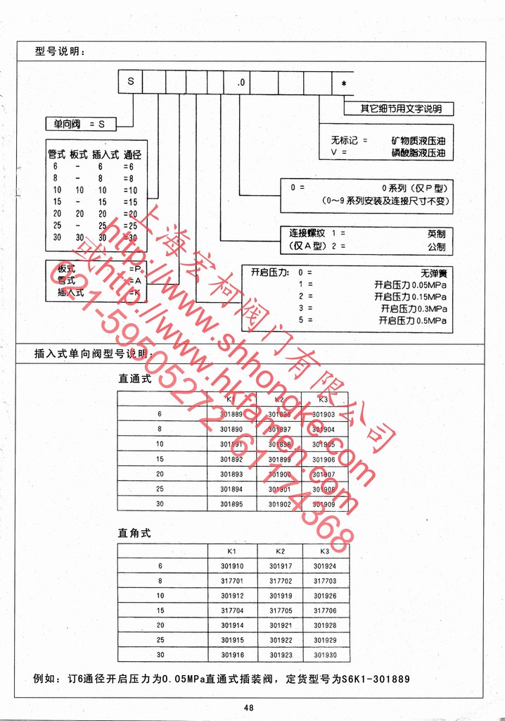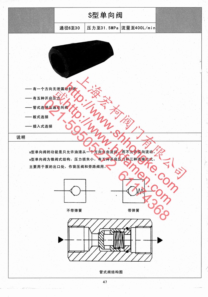S单向阀,S管式单向阀,s螺纹单向阀,S6A,S8A,S10A,S15A,S20A,S25A,S30A