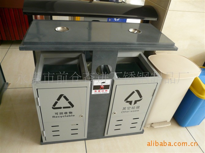 1,材质:垃圾桶整体都用优质冷扎板,经折弯冲压一次性成型。,产品一律用室外粉静电喷塑,经过180°的高温,最大限度延长了垃圾桶的使用寿命,使垃圾桶颜色持久不变,亮丽如新。表面经除油——清洗——酸洗——清洗——表调——磷化——清洗——烘干——静电粉末喷涂——高温塑化——冷却。喷涂粉末经ISO9002质量体系认证,易保洁表面光滑之优点,不脱落,不起层。