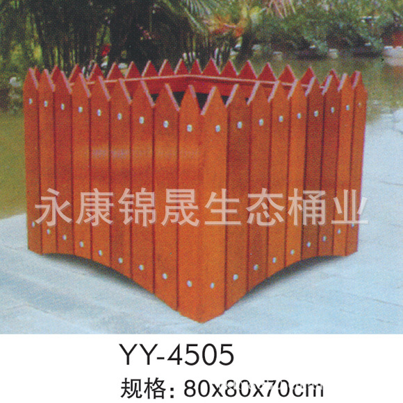 [适用范围]主要用于公园、别墅、小区、旅游景点等休闲娱乐场所。可以为您量身定做个性化产品,为您创造一个清新自然的休闲空间。 户外家具木头材质的选择: 一般来说,要选择油分较大的木材,如山樟木、菠萝格、柚木等,而且一定要做过防腐处理;制作工艺也很重要,因为长期暴露在外,变形在所难免。如果工艺不过关,家具很可能因为榫接不牢或者膨胀系数不对而散架;另外木质户外家具需要经常用木头油或者油漆保养,这样才能是木头材质的产品在户外持久耐用。 户外家具特点: 户外家具区别于一般家具的特点在于其作为城市景观环境的组成元素——城市的“道具”,而更具有普遍意义上的“公共性”和“交流性”的特征。 作为家具整体中的重要组成部分,户外家具其基本内容一般是指城市景观设施中的休息设施部分内容。例如用于室外或半室外空间的休息桌、椅等。 花箱: 感受一年四季如春;领略常年的绿色风景;于奇花异草中,爱我所爱,营造一片舒畅心情;呼吸新鲜的绿色气息,为美好生活增添一份乐趣,让您沐浴于绿色的阳光下,如座春风,关注环境,美化环境,人生得意须尽欢.....作为鲜花和植物的收容器,可以放在风景优美的地方欣赏,也可以和亭、廊等结合,构成一道独特的风景线。另外规格多样,有规格较少的置室内,小巧轻盈、清新时尚。规格较大的、可以放在方场,稳重大方,耐用,颇具时代感。 | |