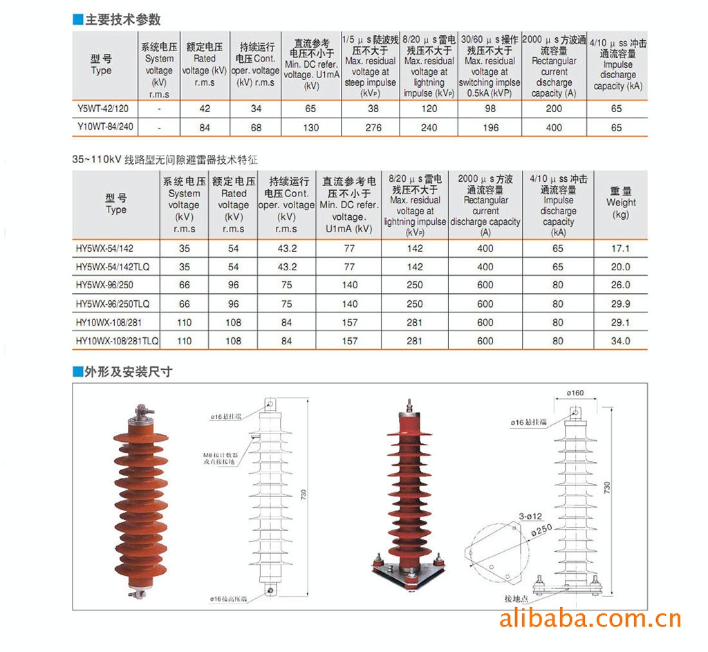 产品性能符合GB11032-2000、JB/T8952-1999、IEC60099-4、IEEE.C62.11标准技术要求。