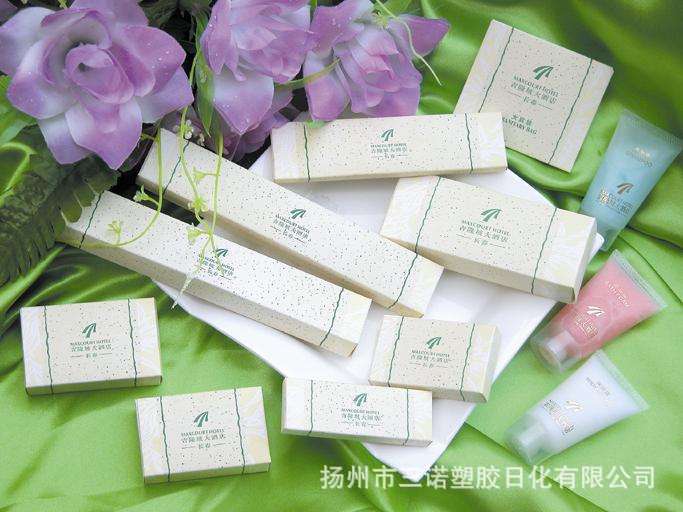 扬州市三诺塑胶日化有限公司是一家专业的酒店客房用品供应商在这块享有“中国酒店日用品之都”和“中国牙刷之都”美名的土地上,本厂已从事了多年宾馆酒店用品的专业生产与销售。我们的产品主要包括: