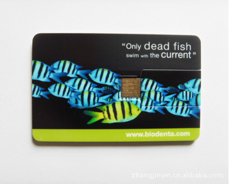 这款翻转式卡片U盘是一家国外牙科医院作为宣传品在我们工厂制定的。卡片的表面印刷着该医院的广告图片,U盘内植入了一段有趣的新技术宣传资料。这款卡片U盘与一般的卡片U盘在装芯片的位置有些不同,它可以360度旋转,比起普通的卡片U盘,它是稍带着一种小淘气的特质的。