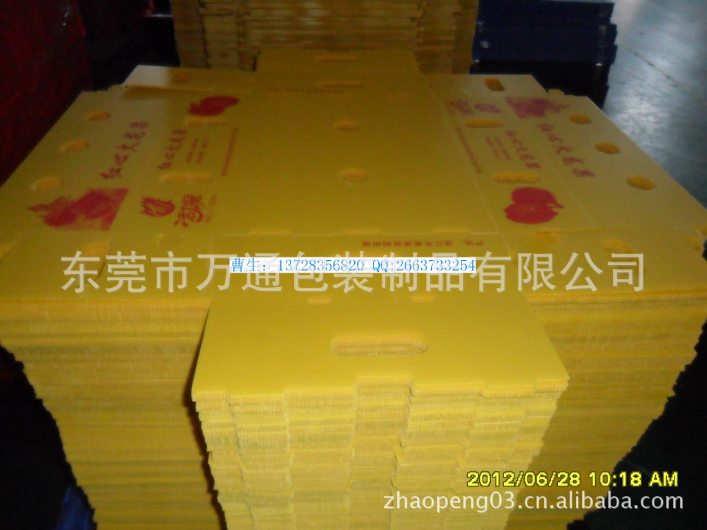 PP中空板是一种新型的环保包装材料,在使用过程中不会产生灰尘,且使用寿命长,是瓦楞纸板寿命的4-10倍以上,可回收利用,有逐渐代替纸制瓦楞板的趋势,主要体现在产品包装上。另外由于PP中空板质轻,韧性好,尺寸灵活,相对成本低,配备各种配件成型的PP中空板周转箱有替代注塑周转箱的势头。其中有普通PP中空板,抗静电PP中空板(表面阻抗范围在10的9-11次方Ω之间),防静电PP中空 本厂位于东莞,占地面积8000多平方,从国外引进了4条高性能的中空板生产线,可生产厚度为2~7mm、宽度最大为2000mm的各种颜色的中空板板材,月产量达500吨以上。公司配备雄厚的技术力量和熟练的操作人员,与之配套的模切、钉箱、印刷等先进加工设备,产品质量得到全国各地客户的一致好评。 本品牌的产品叫法很多,如:塑料中空板,塑胶中空板,塑胶万通板,双壁板,PP中空板,真空板,中空板周转箱,中空板骨架箱,塑料中空板周转箱,中空板垫板,玻璃瓶瓶托,中空板隔板,中空板刀卡,PP中空板刀卡,防静电中空板刀卡,防静电中空板,防静电中空板周转箱,导电万通板,导电中空板周转箱,导电中空板,塑料中空板工具箱,电子厂周转箱,产品包装箱,汽车配件周转箱,附珍珠棉中空板刀卡箱,汽车配件中空板周转箱,纸箱型中空板周转箱,折叠型中空板箱,中空板折叠箱,可折叠万通板箱,加强型中空板箱,铝合金边条中空板周转箱,加强型中空板骨架箱,塑料中空板箱,封边中空板,中空板封边板,中空板衬板,PP衬板,手袋厂衬板,箱包衬板,中空板箱包垫板,中空板展示箱,