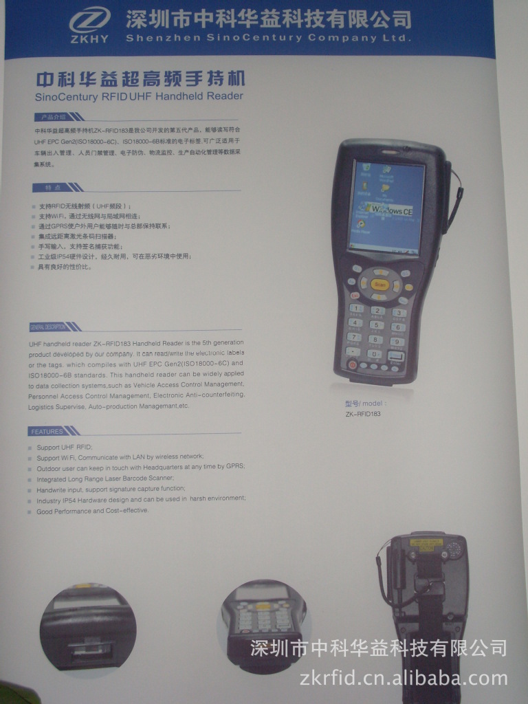 中科华益超高频ZK-RFID183是我公司开发的第五代产品,能够读写符合UHF EPC Gen2(ISO18000-6C)、ISO18000-6B标准的电子标签,可广泛适用于车辆出入管理、人员门禁管理、电子防伪、物流监控、生产自动化管理等数据采集系统。