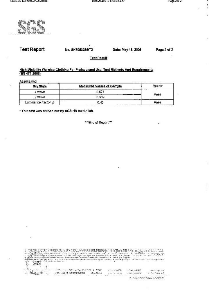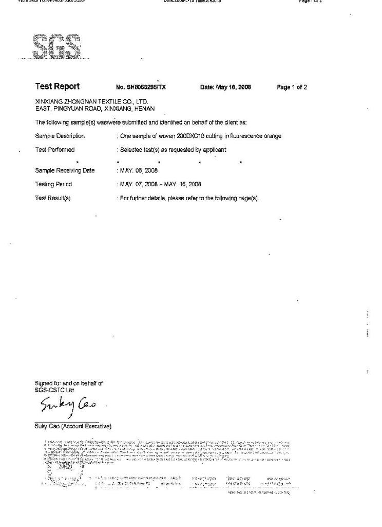 主要品种有:涤棉交织布荧光、T/C荧光。涤纶布荧光、腈氯纶/棉荧光。均可达到EN471标准,且拥有荧光度证书。