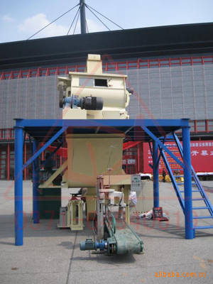 干粉砂浆生产线成套设备主要是由提升机、预混仓、小料仓、混合机、成品仓、包装机、除尘器、电控柜、气相平衡系统等设备组成;水泥等大比例原料可通过人工计量经过提升机进入预混仓,纤维素、胶粉等小比例贵重母料可通过电子秤计量投入外加剂料斗,与简易型相比又先进一步因为混合机混合之后通过阀口袋包装机或者敞口袋包装机自动计量包装,可使用皮带输送机运送至成品堆积区。