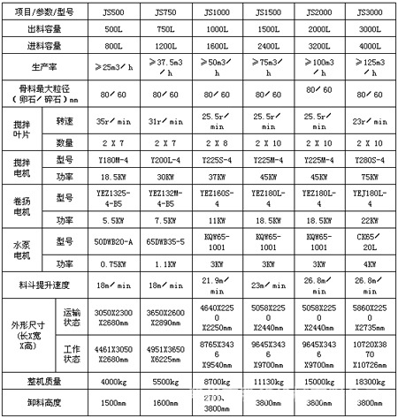 JS系列双卧轴强制式混凝土搅拌机。该系列产品有JS500、750、1000、1500、2000、3000六种主要机型。