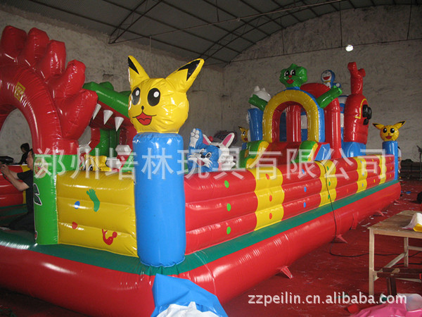 充气玩具属新一代的娱乐设施,根据儿童的特性设计,它内含滑梯,各式各样的动物造型,有丰富的娱乐项目,深受孩子们的喜爱。它具有安全性,综合性,可观赏行,新颖性,色彩鲜艳,经久耐用。通过科学的立体组合,采用超强的防水布制作而成,是一种综合性超强的娱乐乐园。游戏者通过翻,滚,爬,摇,晃,跳,钻等新奇的活动方式,达到开发智力,锻炼身体,愉悦身心的目的。本产品因其随意性和无动力装置受到买家的欢迎,安全可靠,管理简单,维修方便。