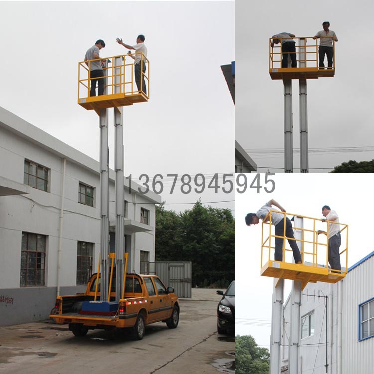 6.车载式铝合金升降机直接又由汽车运输,方便,不需要上下搬动升降机,直接由汽车移动即可。