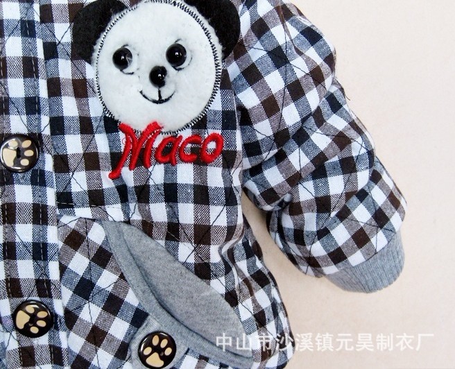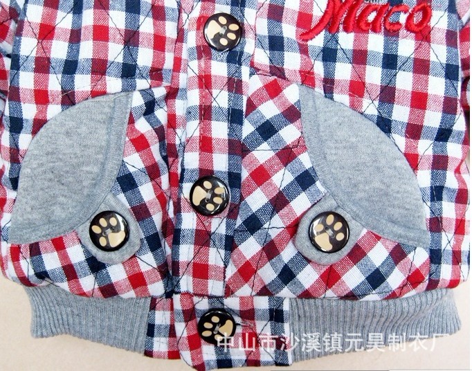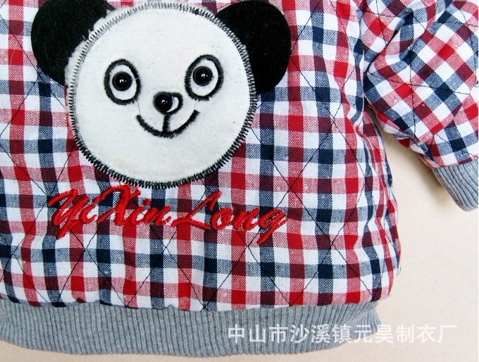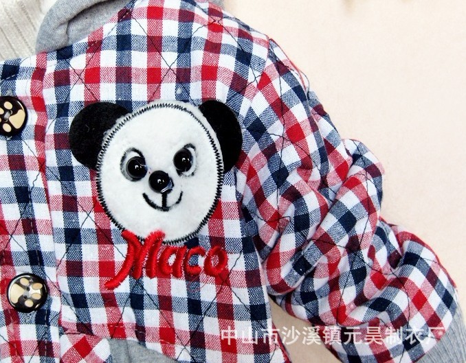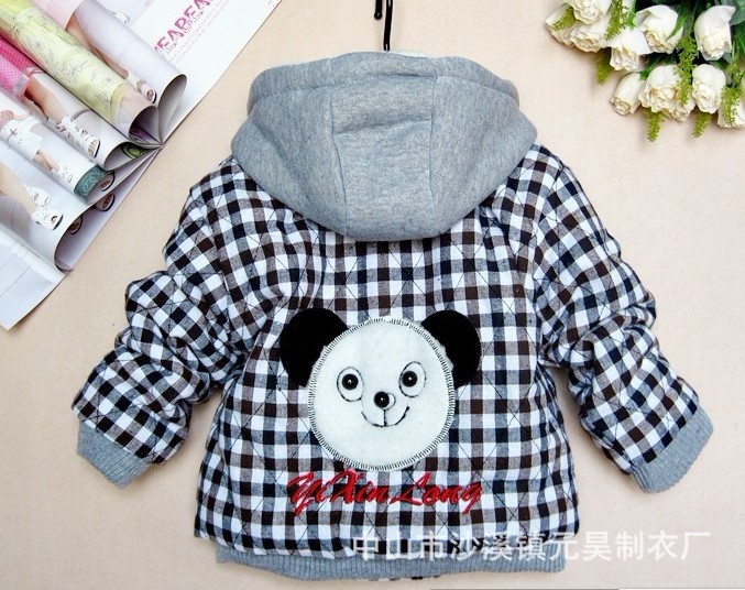 供应新款韩版小熊格子连帽加厚儿童棉衣 原单外贸童装棉外套