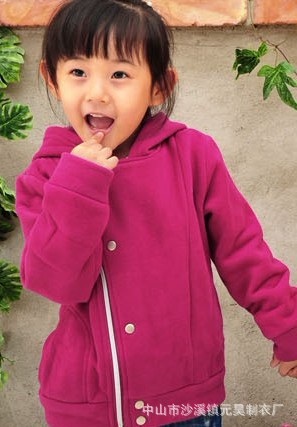 供应秋冬新品斜拉链抓绒连帽童装卫衣 来图来样定制质量保证