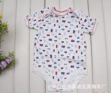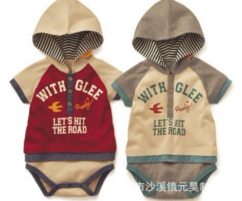 2012供应新款全棉短袖连帽童装婴幼儿爬服/包屁衣/连身衣外贸童装