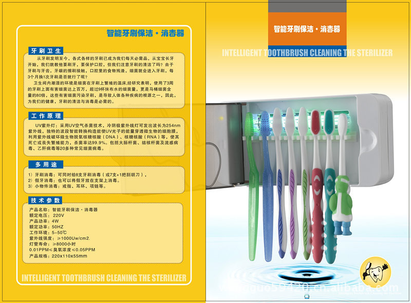 牙刷消毒:可以同时为8支牙刷消毒(或7支+1把剃须刀);