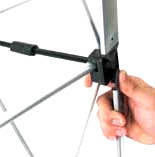 磁性吸杆,方便安装,携带方便,铝合金颜色,简单高档。箱子可以作为接待桌,充分利用了,