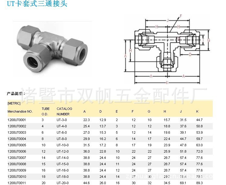 本司生产的铜、不锈钢双,单卡套式管接头具有连接牢﹑耐压能力高﹑