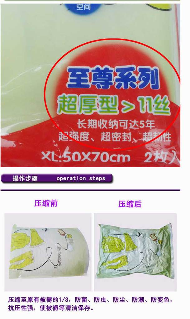 压塑、防潮、防虫、防霉、防变色、防尘等六大特效。高阻隔性、密封性、抗压性好,上下重叠使用,不占空间、便利性佳。