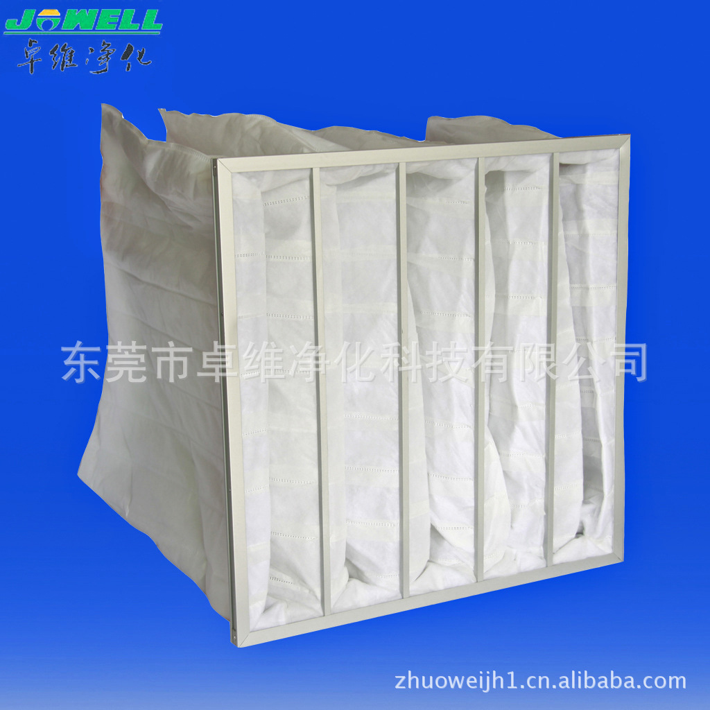 中效过滤器——袋式过滤器和FB折叠板框过滤器,袋式过滤器分有F5 F6 F7 F8 F9级过滤效率,是空气净化中的中级过滤,效率在50-95%之间。