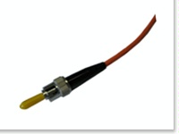 5.5将已清洁干净的光纤从已吸好胶的插芯的尾部插入。插入时,用一只手拿住已吸好胶的插芯,另一只手拿光缆,将准备好的光纤从插芯的尾部穿入,直到∮0.9的光纤涂层插到插芯底部,光纤从插芯顶部伸出。回拉光纤约1mm,以确认是否断纤。