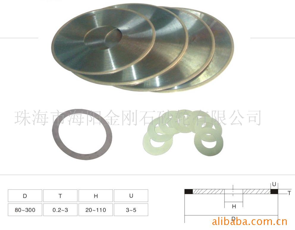 该产品主要用于光学玻璃棱镜、硅晶体、磁性材料等一些棒管材的切割与开槽。由金属结合剂、树脂结合剂和电镀结合剂制作。D50-300