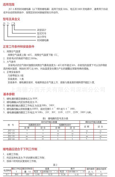 JS7-A系列时间继电器(以下简称继电器)适用于交流50Hz、电压至380V的电路中,通常用于自动或半自动控制系统中,按预定的时间使被控制元件动作。