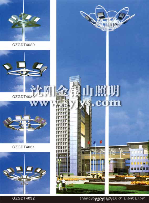 源一般采用高压钠灯和金卤灯。,照明半径达60米。杆体一般为圆柱型独体结构,用钢板卷制而成,高度为15—40