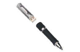 五金+胶皮U盘笔机身铜管+五金+胶皮,分上下两节,下节可扭动写字,笔与U盘的结合,时尚独特,别具一格,极显个性。金属外壳表面可电镀或烤漆处理,颜色可选,笔身可丝印或激光雕刻企业LOGO。产品尺寸:14x1.7x1.5cm 产品重量:37.5g产品颜色:银色。