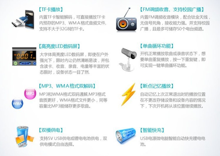 绿色灯表示进入工作状态,闪烁表示进入插TF卡状态,常亮表示AUX模式