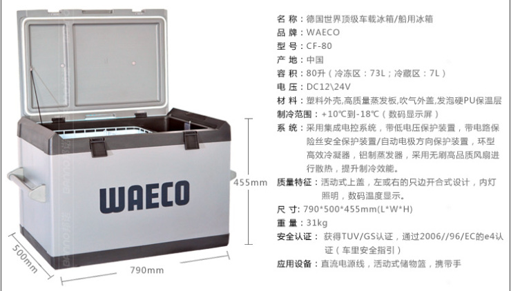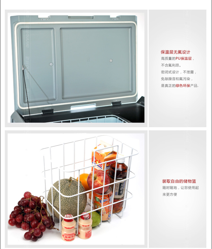 1. 不同于普通的家用冰箱,可移动使用,压缩机具有抗震性,可以在最大45度斜角状态下运行。