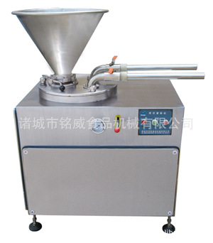 该机是加工肠类制品的必备设备。能灌制大、中、小各种规格的肠制品,适用于动物肠衣、蛋白肠衣、塑料肠衣的灌制,尤其对较干的料馅相对其他灌肠机效果更佳。该机上部设有贮料斗、碟形阀,可实现不掀盖连续灌制,提高了工作效率。
