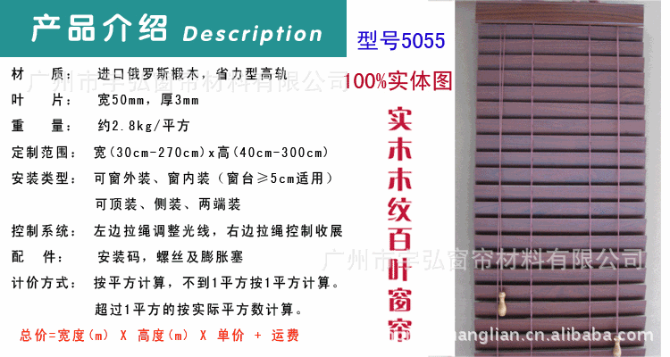 【名称】:宇弘实木百叶窗帘/竹百叶窗