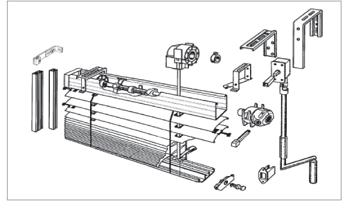 50mm钢丝导向手动户外铝合金百叶帘结构拆分图 |