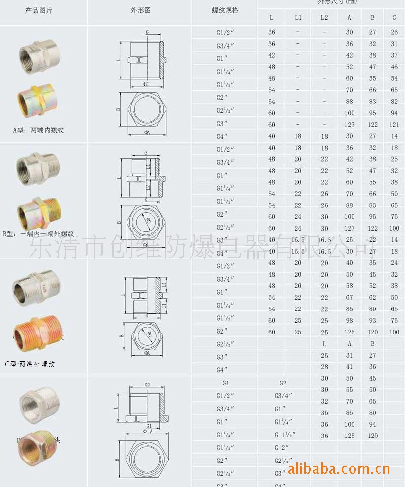 注:1、正标产品的两端螺纹型式为管螺纹,且为同一规格;