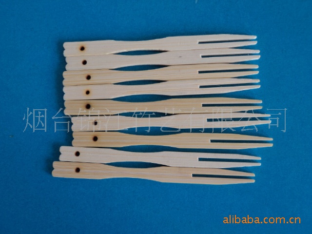 我厂加工的水果叉均是双面磨光,手感细腻,采用成年毛竹为原料,纤维好,韧性好,不易折断。