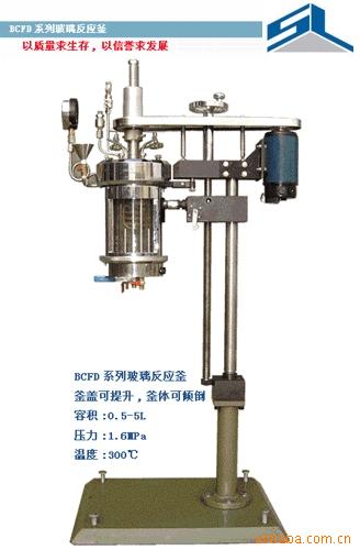 产地:烟台招远型号:SYBFD 名称: 可视石英玻璃反应釜 价格: 2.7—5.5万元(特殊材料价格另议) 规格: 0.3L、 0.5L、1L、2L、 3L、5L 产品描述 材质:石英玻璃/1Cr18NI9Ti(可选特殊材料)压力:0.1-1.6MPa(≥2L为0.8MPa) 温度:≤220度 SYBFD系列反应釜,采用双层高透明石英玻璃制成可视筒体,上下盖采用金属材料,双层筒体中间采用透明度高的导热体来加热,便于观察反应情况。搅拌采用静密封强磁力搅拌,可配多种搅拌浆。釜盖固定不动,便于连接进料或进气的硬管线,釜体可升降、翻转或下出料,使用及清洗方便。